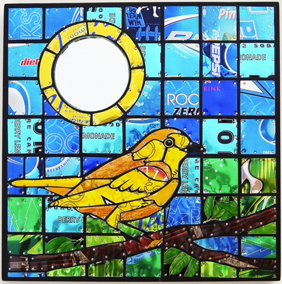 I think it is so cool to see how pieces of trash can become beautiful works of art. That is why I am so blown away by the contemporary metal mosaics that artist Jill Helms makes from soda pop cans.