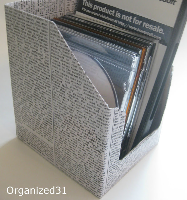 Look for an easy tutorial on this CD holder that Susan says took less than 10 minutes to make at Organized 31.