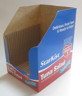Susan dressed up the box with some wrapping paper designed to look like vintage newsprint. It looks great on her shelf, now, and makes a perfect place to store the CD’s that she needs to use in her office area. Better still, it cost her nothing! I’m super impressed that Susan could re-imagine a humble tuna fish box into something useful and good looking for her home. (That newsprint wrap is just right for office decor, don’t you think?)
