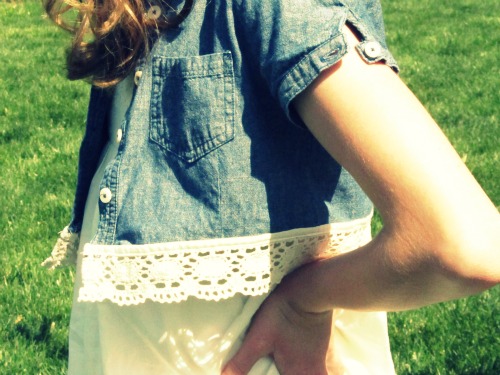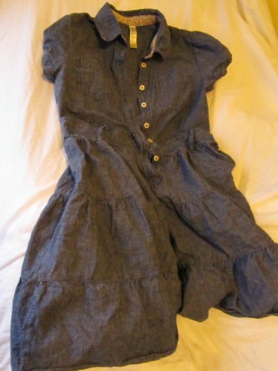 Ruth, who blogs at A House in Holland, needed a cropped denim jacket for her teen daughter. Her daughter noticed a denim dress in the Goodwill box and asked, “Can’t we make a jacket out of that?”
