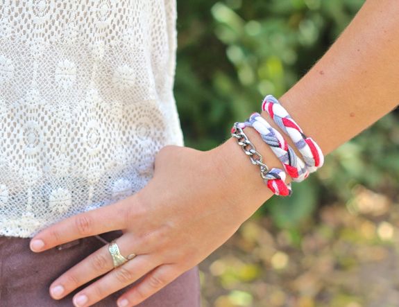 Stephanie of Henry Happened had several striped t-shirts that she wasn’t wearing anymore. She gave them a second life by turning them into jewelry.